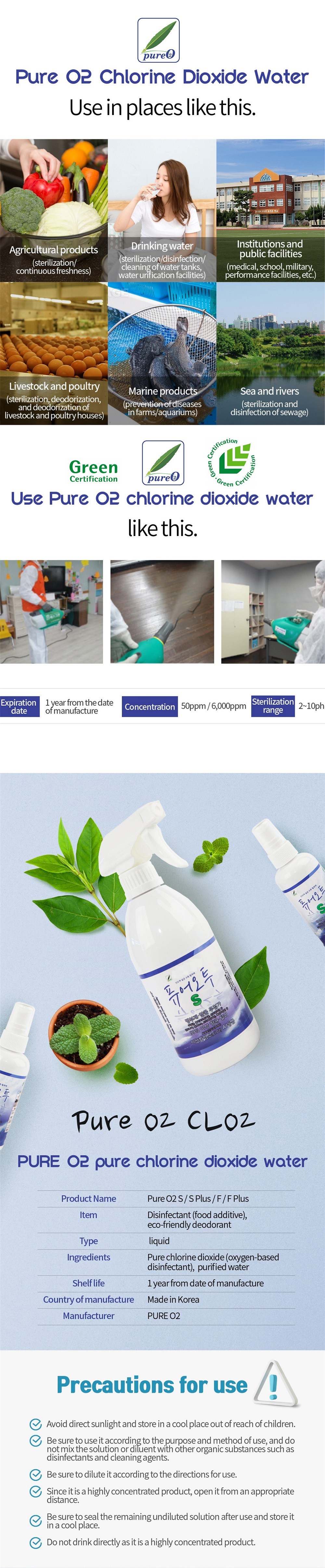 Pure chlorine dioxide water S(s) 100ml spray